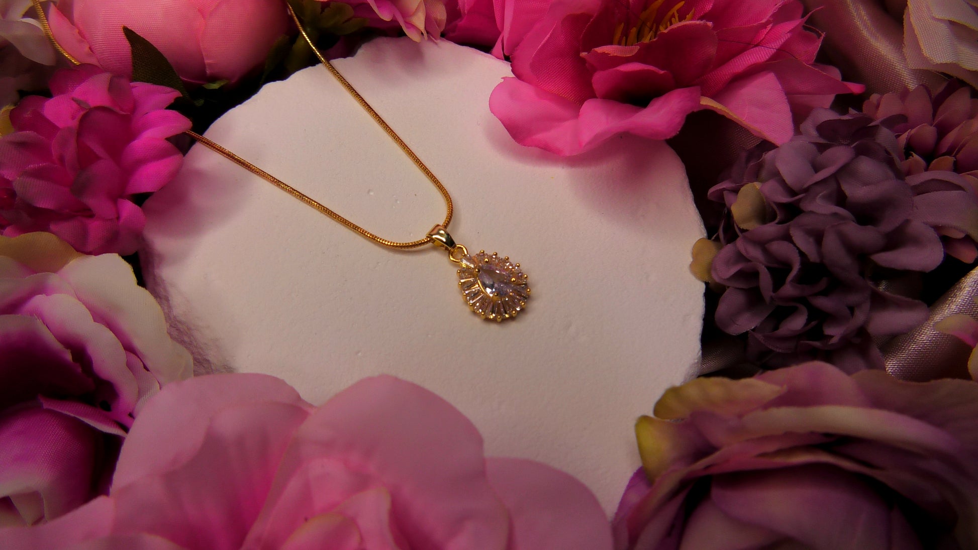 Charmet, som mäter 1,7 cm i längd och 1,2 cm i bredd, hänger delikat från ett 45 cm kopparhalsband, vilket ger en graciös passform runt din hals. De intrikata zircon-detaljerna fångar ljuset vid varje rörelse och ger en strålande glöd som enkelt lyfter din stil.